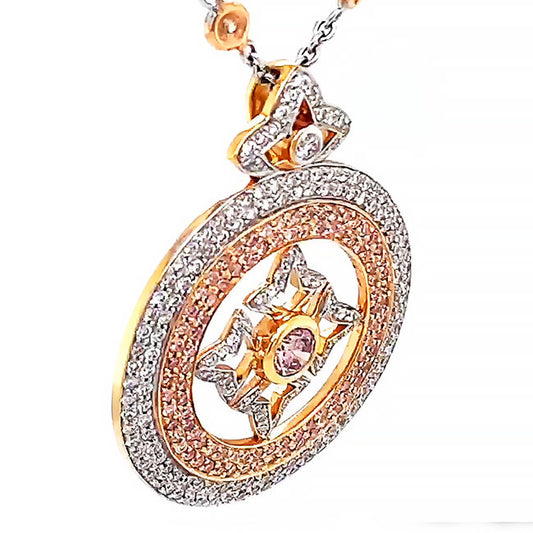 18 kt Rose gold & white gold necklace with natural pink diamond center GIA cert and pink and white diamonds