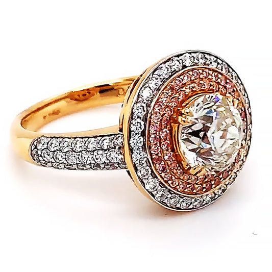 18 kt Rose Gold engagement ring set with natural rare color Gray diamond center and pink diamonds